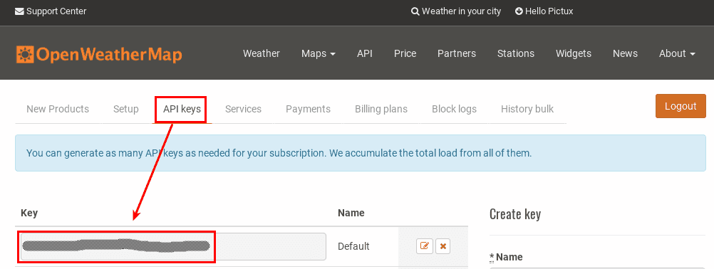 In order to use this node you have to obtain a API KEY from OpenWeatherMap. It's very easy: just register on their site for a Free Plan and then copy your API KEY!