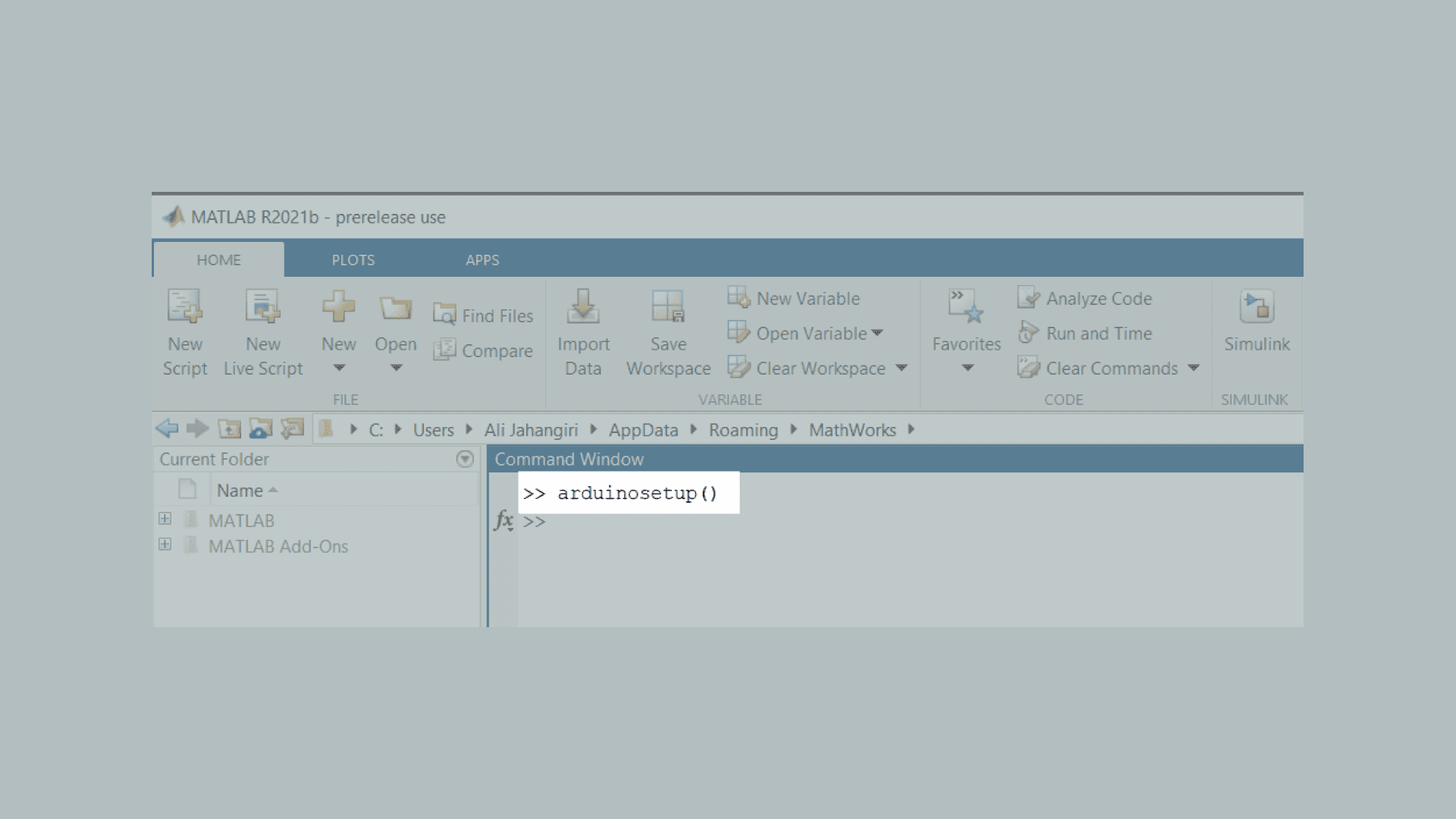 Unrecognized function or variable 'arduinosetup'